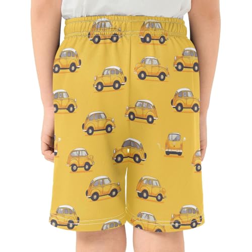 Boys Athletic Shorts with Pockets Old Yellow Car Running Basketball Shorts for Youth Elastic Waist Size 7-8 3