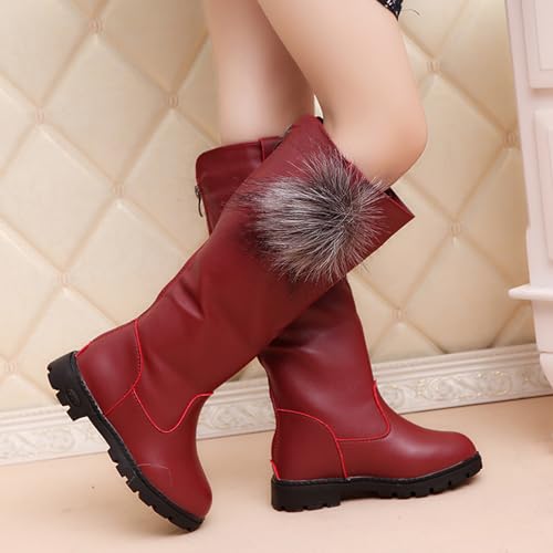 WUIWUIYU Toddler Little/Big Girls Back Zip Pom Pom Knee High Boots Waterproof Riding Cute Snow Boots 6