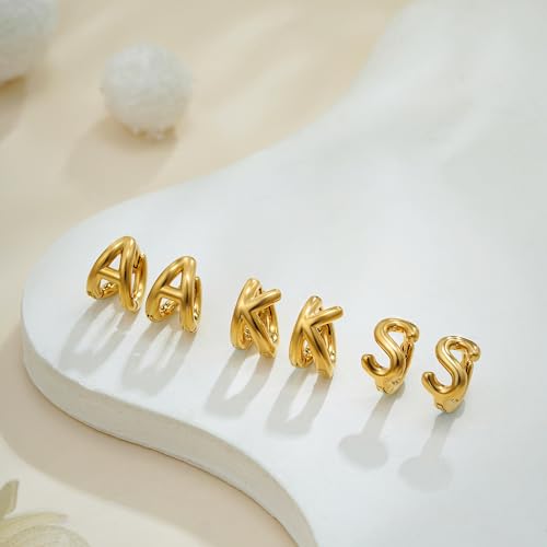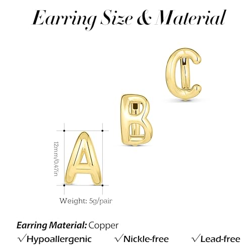 SLOONG Gold Initial Earrings for Women, Letter Stud Hoop Earring Trendy Alphabet A-Z Simple Tiny Small Minimalist Dainty Cute Hypoallergenic Jewelry Gifts 3