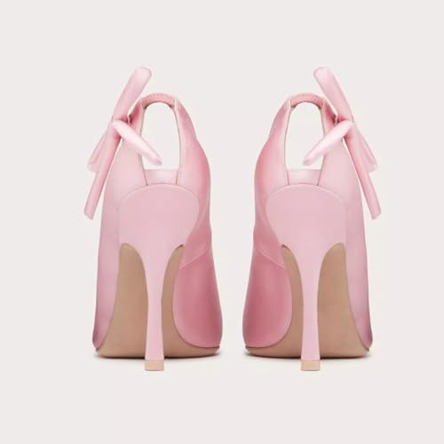 XYD Women Closed Pointed Toe Satin Pumps Elastic Slip-on High Heel Stilettos Side Bowknot Evening Elegant Shoes
