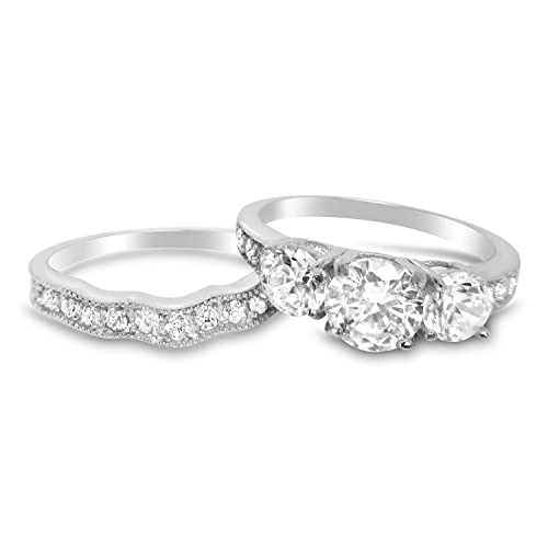 - WOMEN'S BRIDAL RING SET: 2 Piece Wedding and Engagement Ring Set for Women. Made in Sterling Silver with AAA Quality, Realistic, Bright White Simulated Diamond Stones.