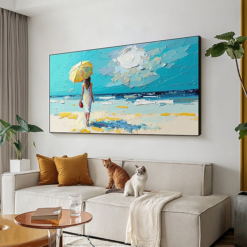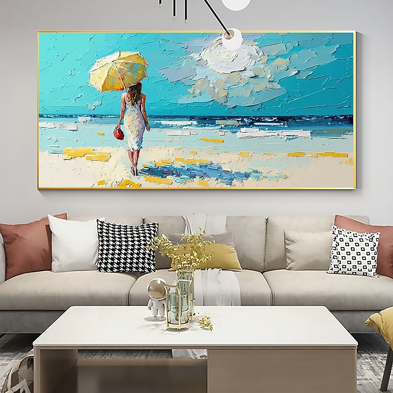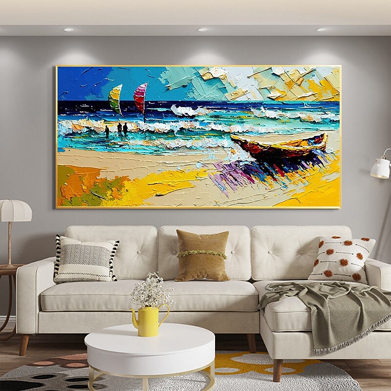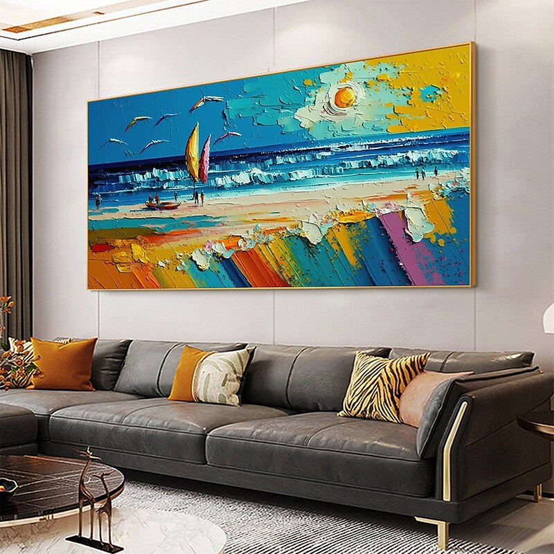 Handmade Hand Painted Oil Painting Wall Art Original Sunshine Ocean Oil Painting On Canvas Extra Large Wall Art Abstract White Waves Painting Boho Wall Decor Decor Rolled Canvas No Frame Unstretched 11