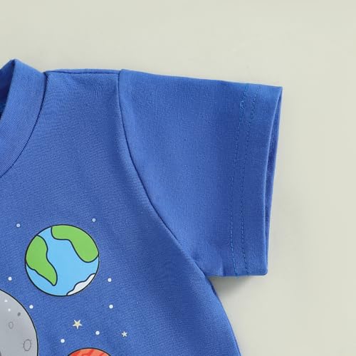 Canis 1-6 Years Birthday Boy Shirt Space Rocket Astronaut Themed T-Shirt with Moon Balloon and Planets Short Sleeve Tee