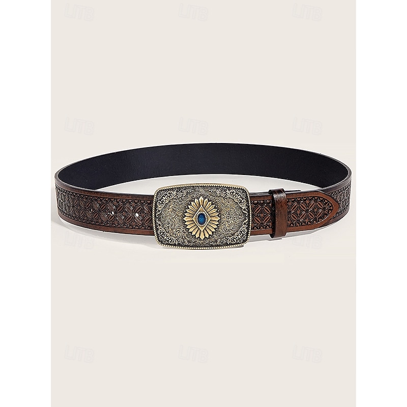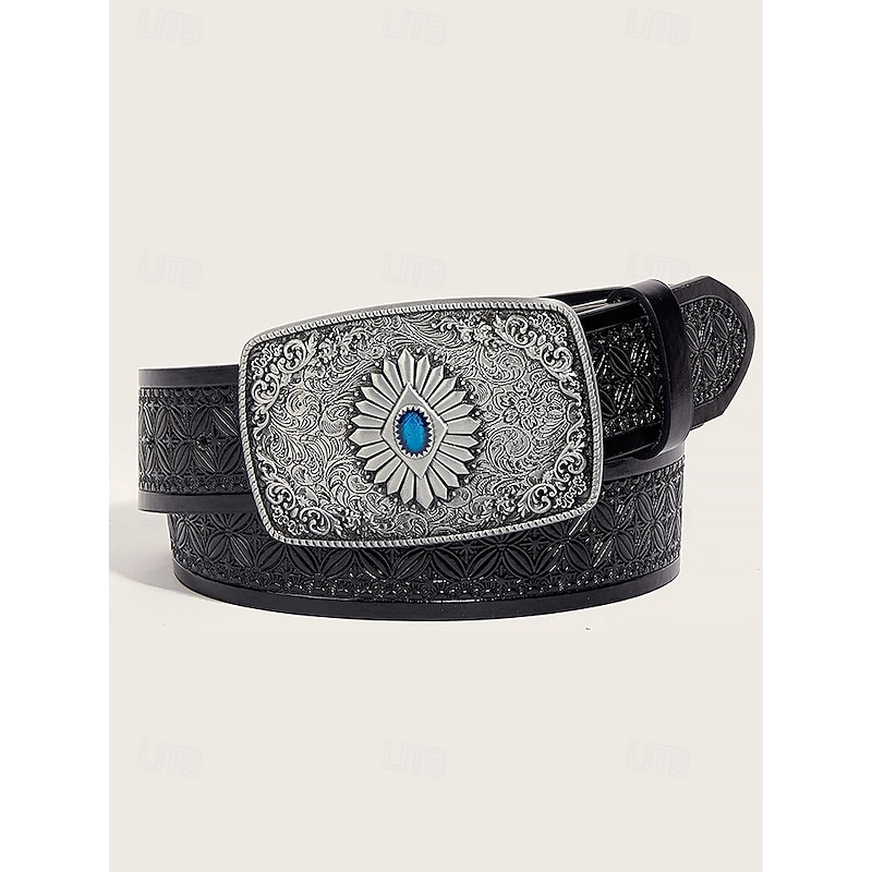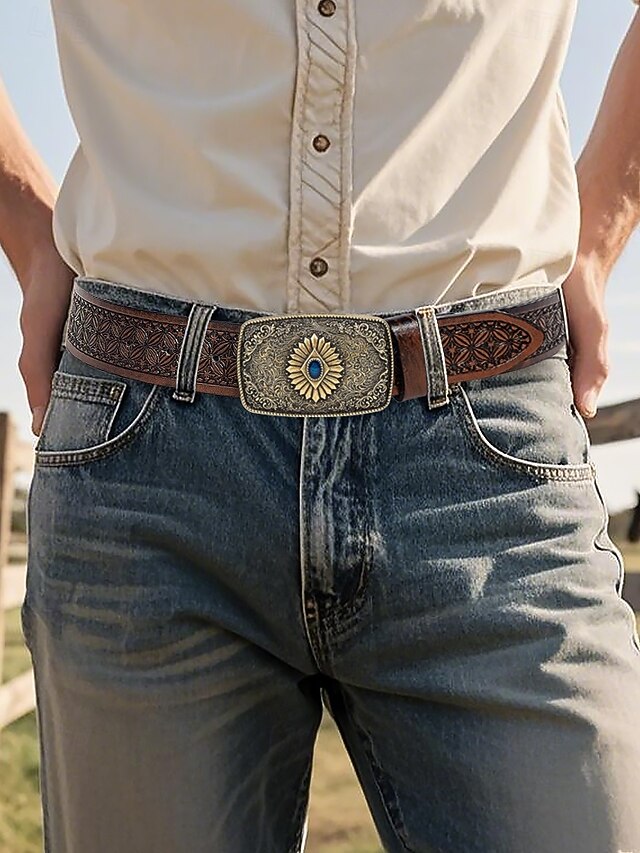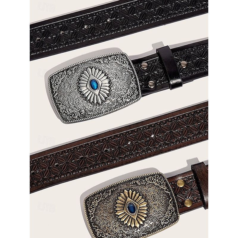 $18.99 - Men's Western Tooled Faux Leather Belt with Vintage Engraved Buckle and Blue Gem, Cowboy Style for Rodeo, Outdoor Events and Casual Wear 2025. Shop for cheap Men's Belts online? Buy at lightinthebox.com on sale today!