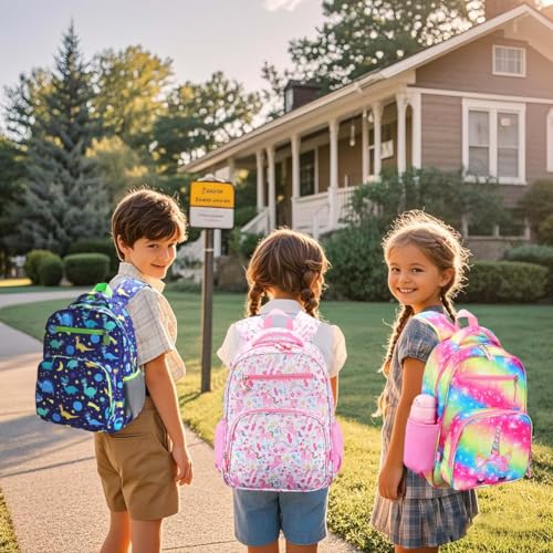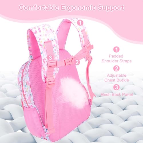 • 1.STURDY BACKPACK FOR LITTLE ADVENTURERS:Your little girl will never stop exploring the world, and this kids backpacks for girls is a super sturdy little fortress. Made of Thickened and encrypted polyester fabric, it is abrasion-resistant, tear-resistant, can easily cope with daily wear and tear and accidental spills. Shoulder straps are wide and thick, with adjustable chest buckle, even dispersion of weight, reduce shoulder pressure, even if the long time backpack is also easy and comfortable
