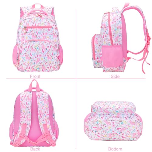 • 2.SPACIOUS AND INSULATED KIDS BOOK BAG:This girls backpacks has a 12-liter capacity and measures 15" x 11.5" x 5", with a main pocket that can hold a binder, e-book, nap blanket and other essentials. The front pocket has the same heat preservation and cold preservation function as the lunch bag, which is convenient for children to classify and store tissues, snacks, small toys and other odds and ends. Two side water bottle pockets that fit up to 32 oz bottles