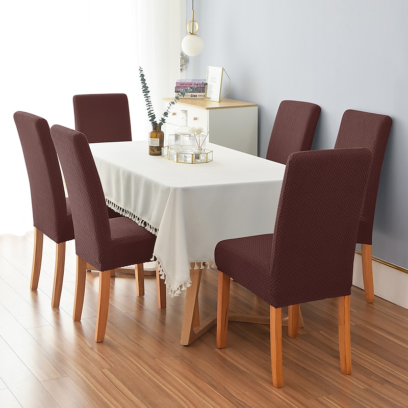 6 Pcs Dining Chair Cover Burgundy Stretch Chair Seat Slipcover Spandex with Elastic Bottom Protector for Dining Room Wedding Ceremony robust Washable