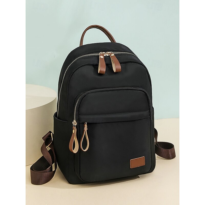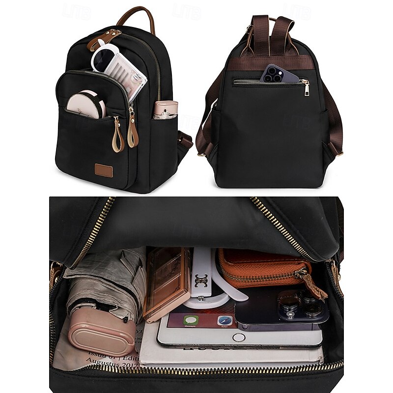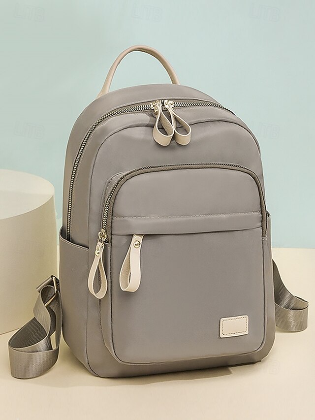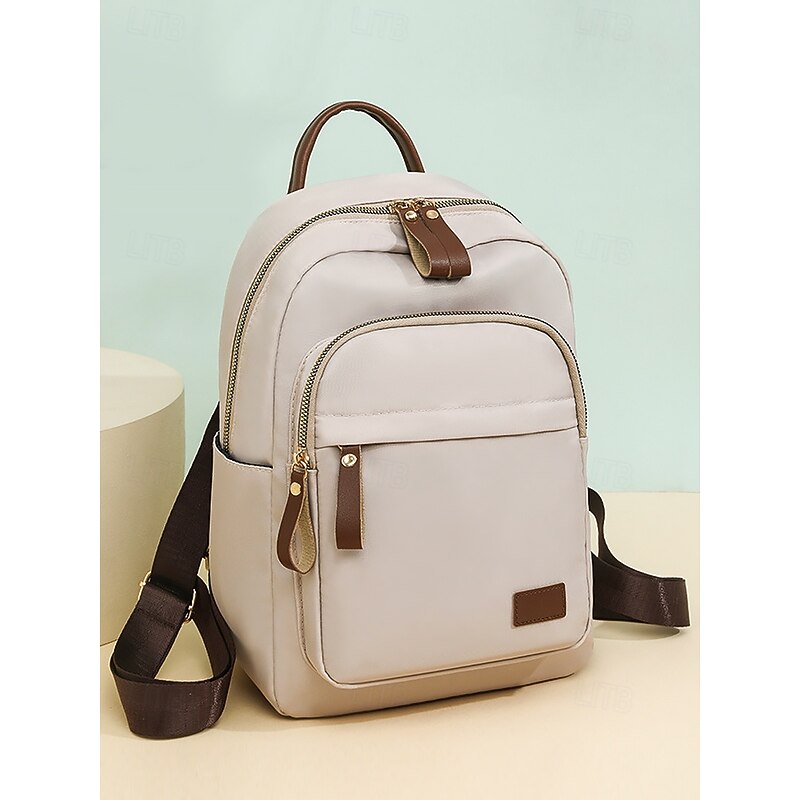 HOT ! Women's Khaki Waterproof Nylon Backpack with Multi Zipper Pockets – Lightweight Casual Daypack for School, Work, or Daily Use
