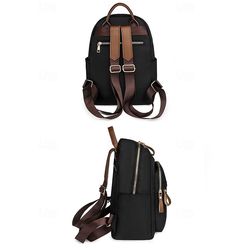 Women's Khaki Waterproof Nylon Backpack with Multi Zipper Pockets – Lightweight Casual Daypack for School, Work, or Daily Use 10