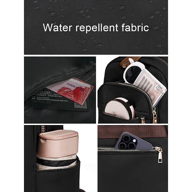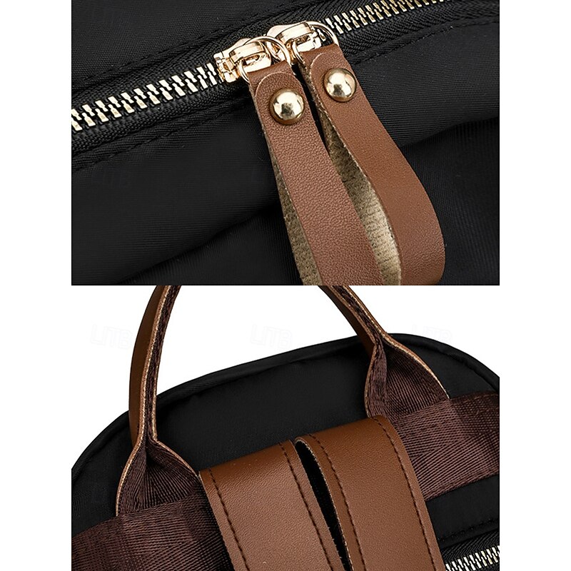 Women's Khaki Waterproof Nylon Backpack with Multi Zipper Pockets – Lightweight Casual Daypack for School, Work, or Daily Use 11