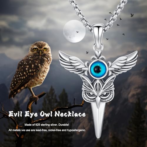 Material: Sterling SilverMetal type: Sterling SilverClasp type: LobsterChain type: RoloGem type: No Gemstone【distinctive Design】: This owl demon eye necklace design is inspired by our love for owls. The evil eye necklace symbolizes power, has the ability to keep peace and away from bad luck, and provides a sense of happiness【High-quality materials】: The owl pendant necklace is made of 925 sterling silver, free of nickel, cadmium, lead, very suitable for people with sensitive skin, can bring a comfortable wearing experience【Perfect Gift】: This owl pendant is 30mm*26mm, weight: 5g. It is the ideal size for gift giving. Can be used as a gift on various occasions. Great jewelry for men women【Ideal Gift Choice】: Our owl demon eye necklace is a birthday gift for men, women, mom, wife, best friend and boss. Owl jewelry is the best gift for Valentine's Day, Anniversary, Mother's Day, Christmas, Thanksgiving【After Sales Service】: If you encounter any problems during the purchasing process, please feel free to contact us and we are happy to help you solve the problem. Perfect for everyday use. premium materials and excellent craftsmanship ensure long-lasting durability.