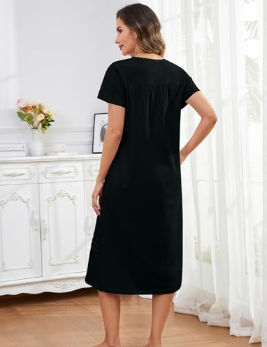 100% Cotton Nightgowns for Women Soft Button Pleated House Dress Long Moomoo Nightgown with Pockets 5