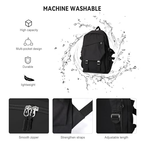 coowoz School Backpack for Men Women College Bookbag Waterproof Lightweight Black Backpack Mochilas Book Bag Rucksack Casual Daypack School Bag for Boys Girls 7