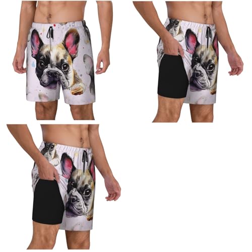 Men's Swim Trunks speedy Dry Board Shorts French Little Bulldog Beach Shorts with Pocket Bathing Suits for Men