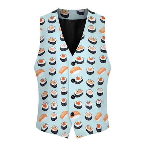 Sushi Japanese Food Suit Vest for Men Waistcoat Dressy V Neck Button Down Sleeveless Business Jacket Coat 4