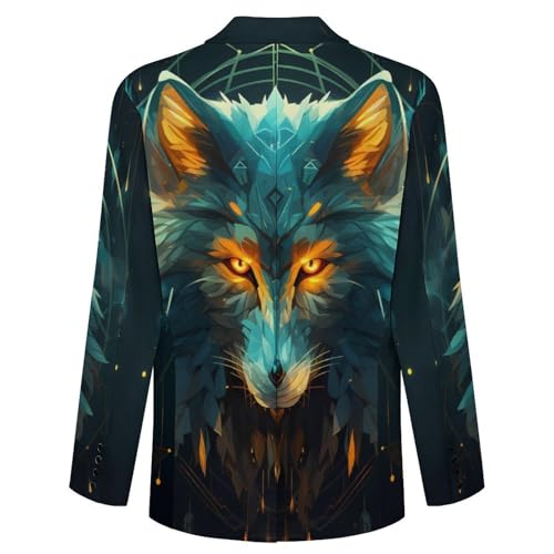HOT ! Wolf Face Head Wolf Mens Blazer Two Button Sport Coat Lightweight Suit Jacket for Travel Business Wedding