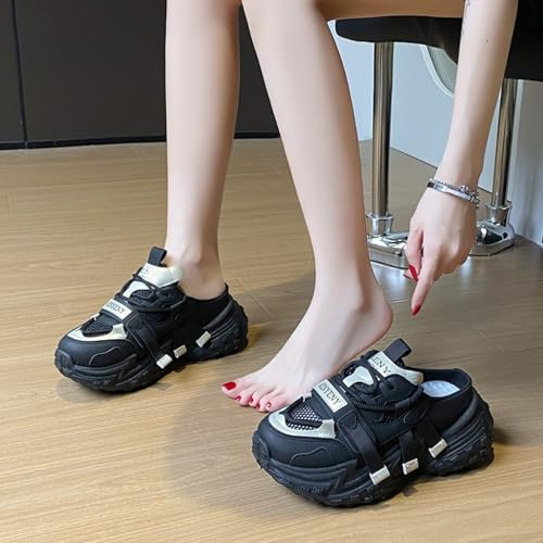 Womens Fashion Lace Up Chunky Platform Backless Sneakers Wear Resistant Low Top Retro Spring Summer Casual Walking Shoes 5
