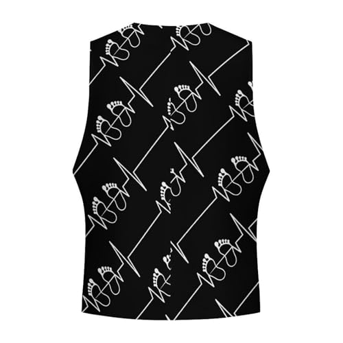 Footprint Heartbeat Men's Suit Vests Business Formal Dress V-Neck Waistcoat Tops with 2 Pockets 1
