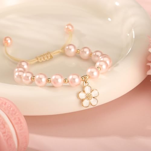 Flower Pearl Bracelet for Girls,Dainty Pearl Charm Bracelet for Flower Girl, First Day of School Birthday Jewelry Gift 7