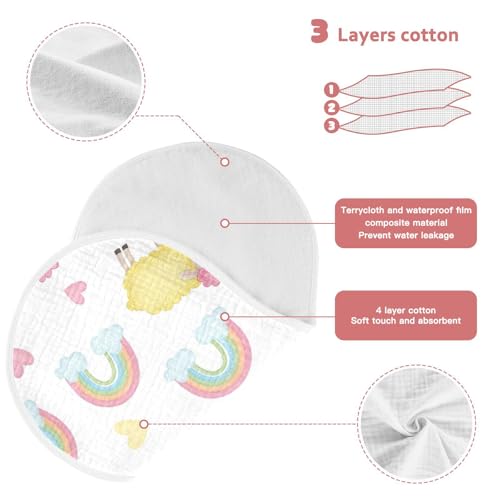 MCHIVER Sheep Rainbow Hearts Baby Burp Cloths Cotton Washcloths Super Soft Absorbent Burping Rags for Baby Boys Girl Burpy Cloth Bib 1 Pack 4