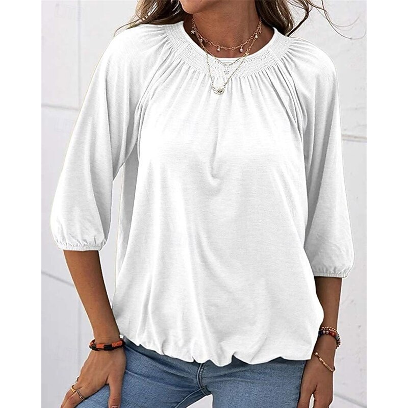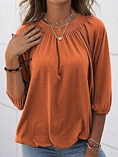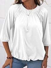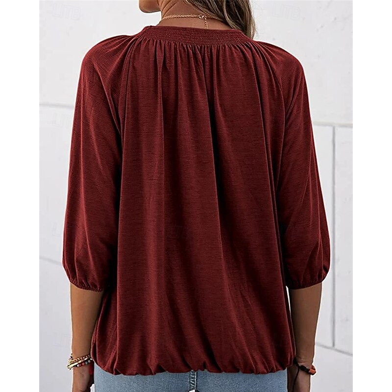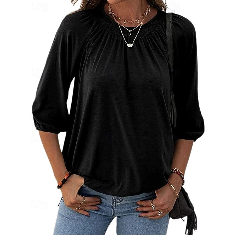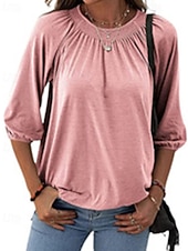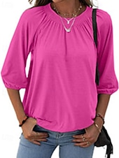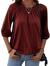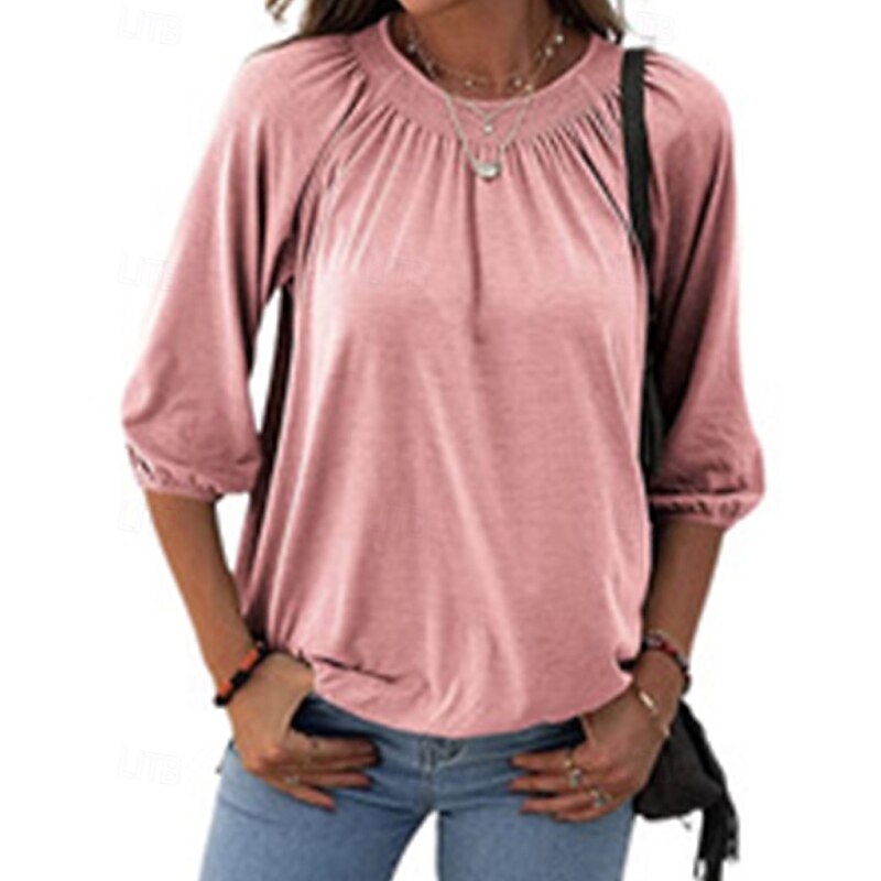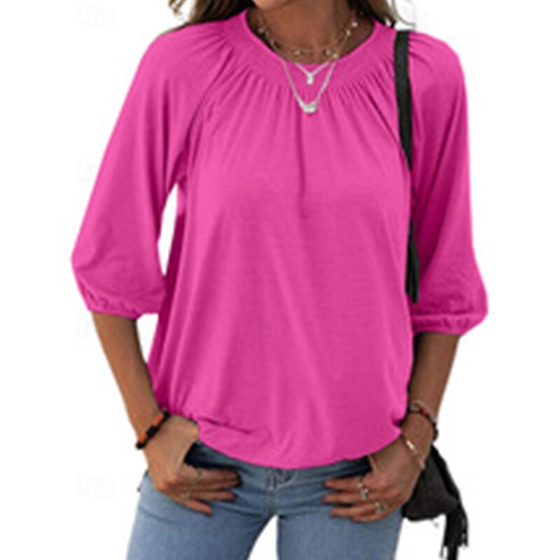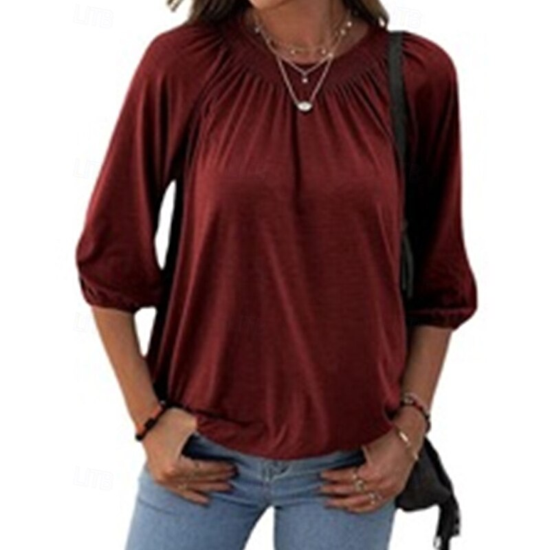 More information about Women's Texture Blouse T Shirt Plain Casual 3/4 Length Sleeve Crew Neck Regular Tops Daily Going out Weekend Patchwork Black White Pink Wine Blue Fall