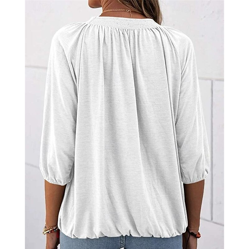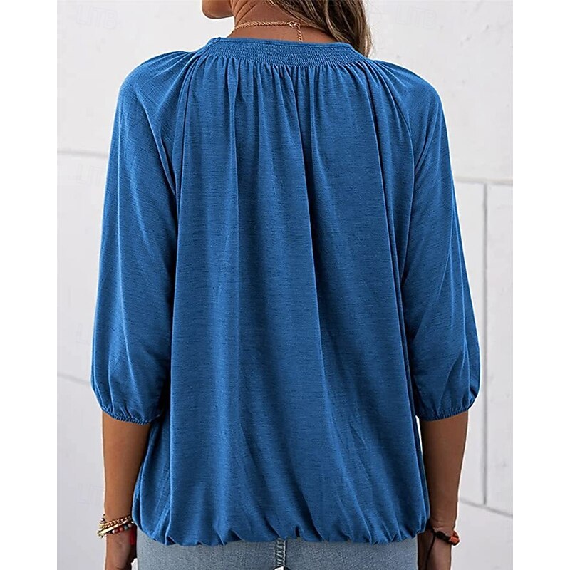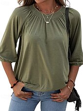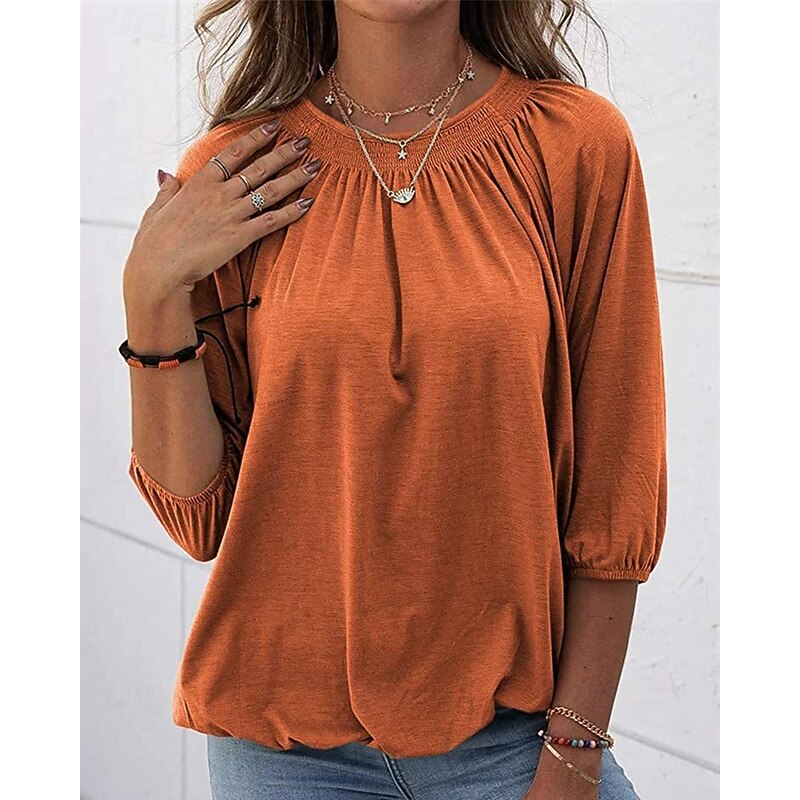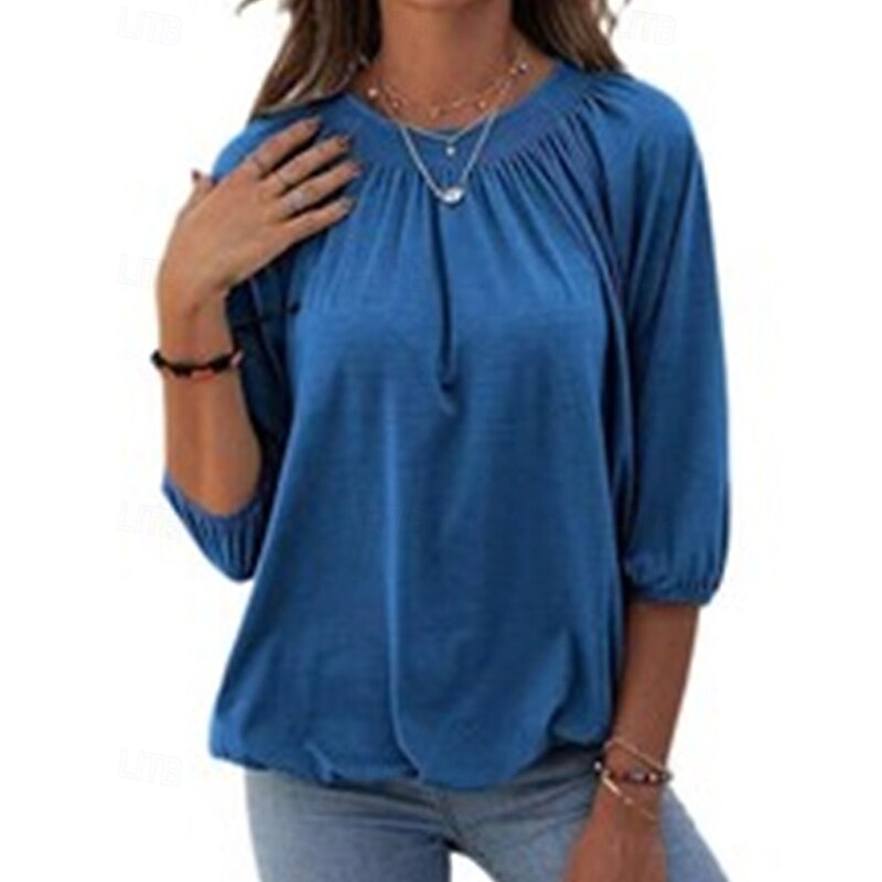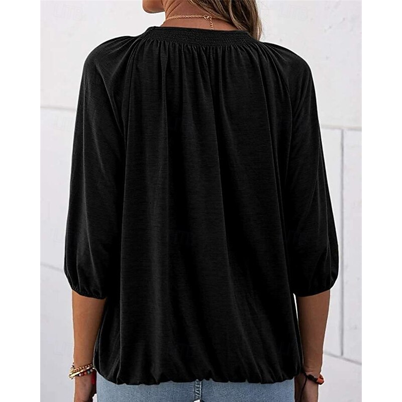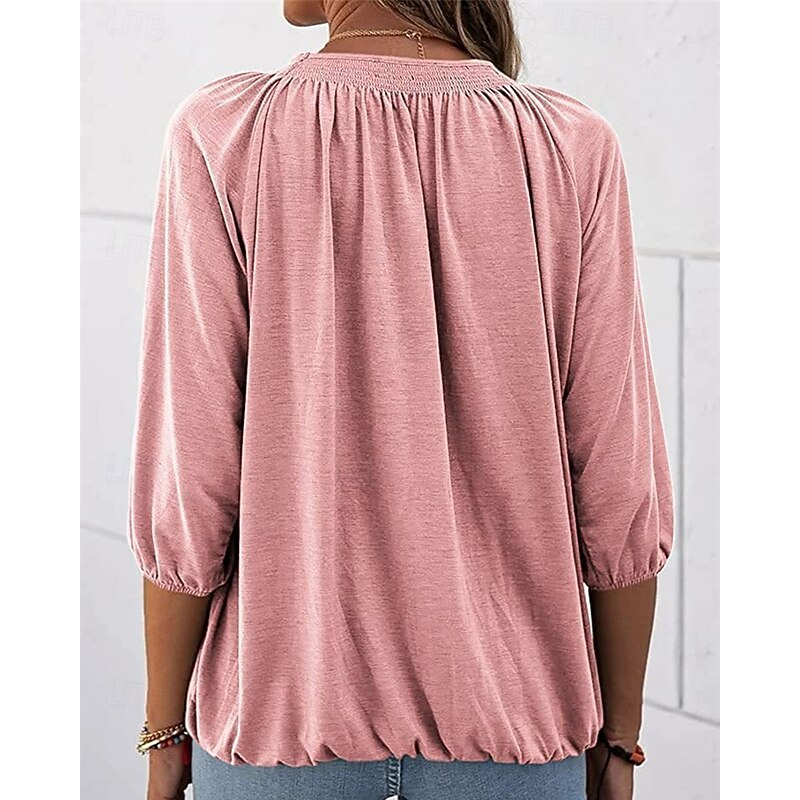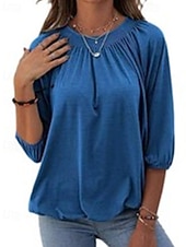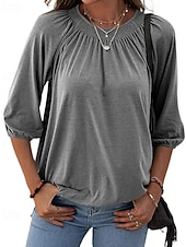 More information about Women's Texture Blouse T Shirt Plain Casual 3/4 Length Sleeve Crew Neck Regular Tops Daily Going out Weekend Patchwork Black White Pink Wine Blue Fall