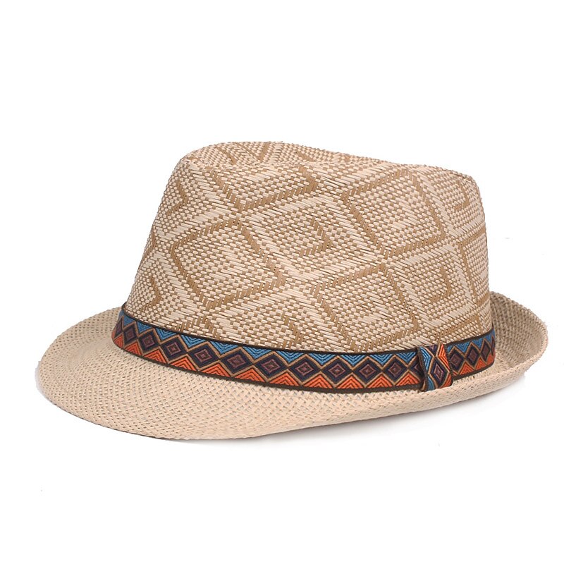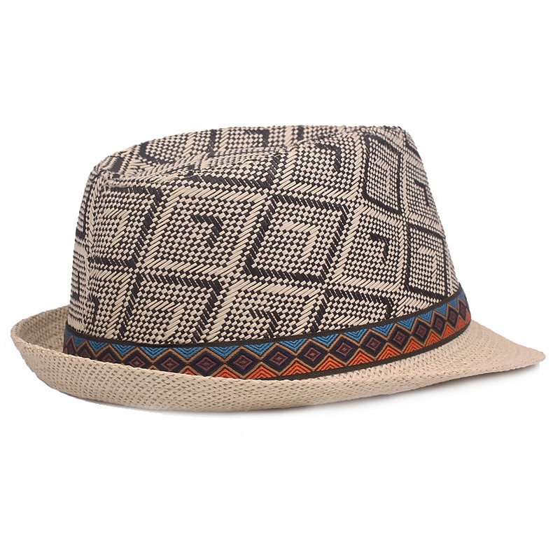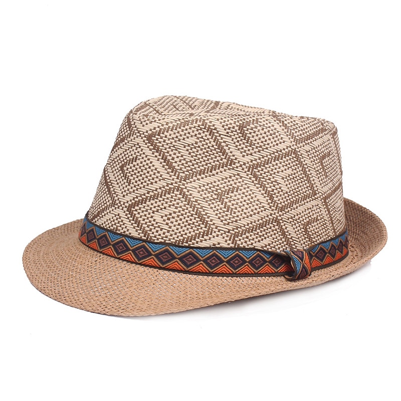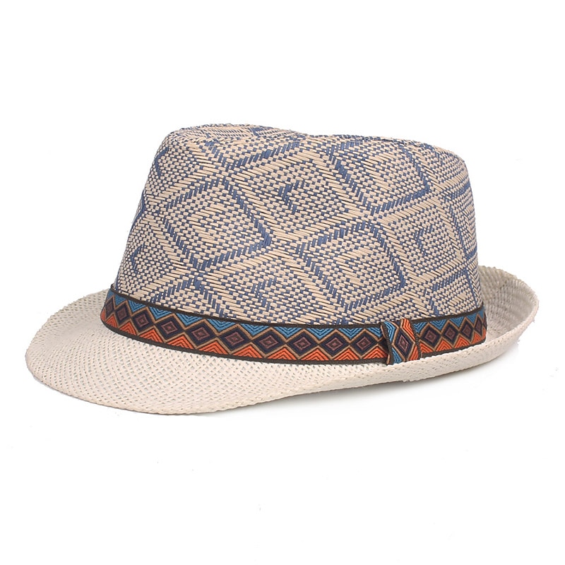 More information about Men's Straw Hat Black Blue Licorice Braided Streetwear Stylish Casual Daily Outdoor clothing Holiday Diamond Pattern Sunscreen Breathability