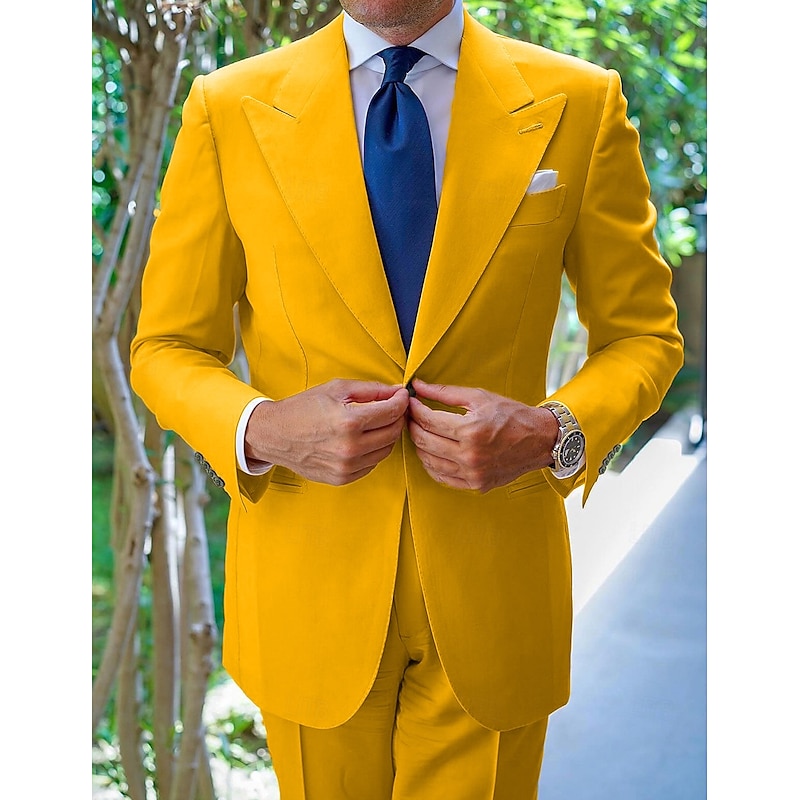 $122.99 - Men's Wedding Party Suits Peak White Yellow Fashion Business Solid Colored Tailored Fit 2 Piece Single Breasted One-button 2025. Shop for cheap Holiday party online? Buy at lightinthebox.com on sale today!