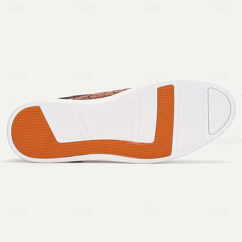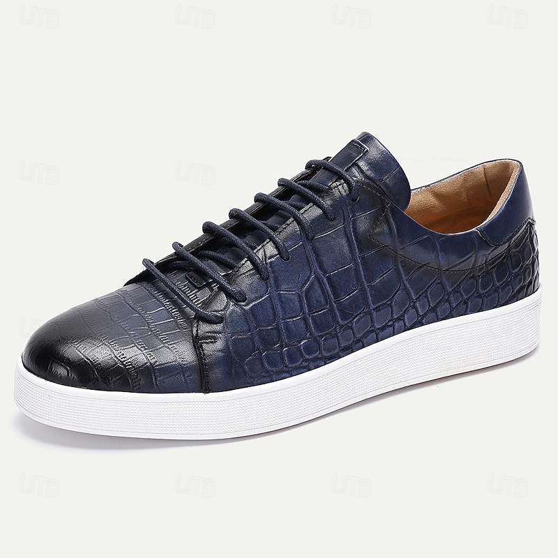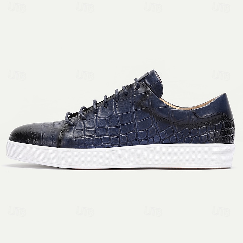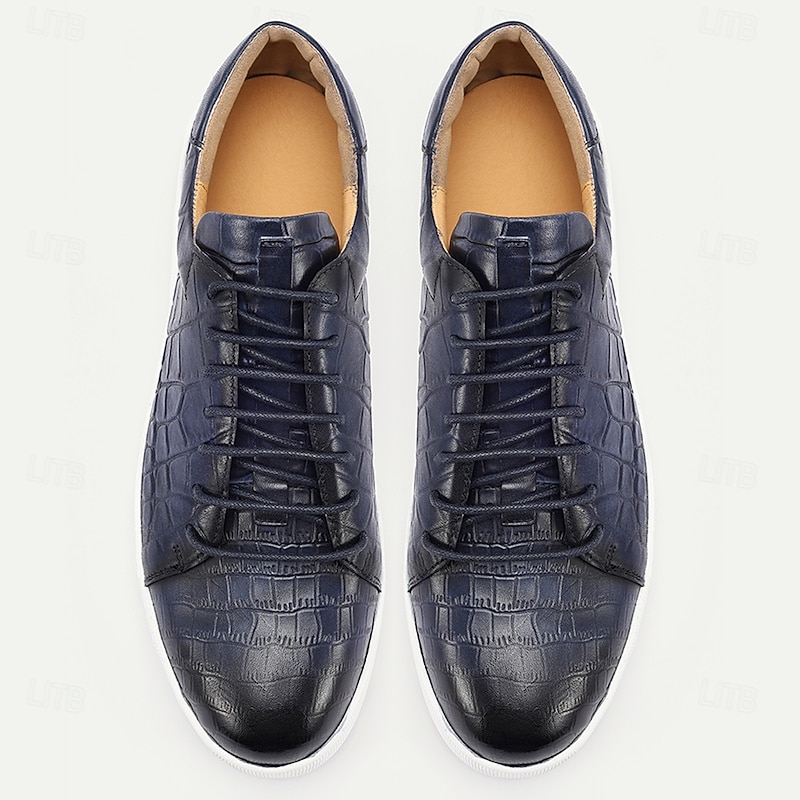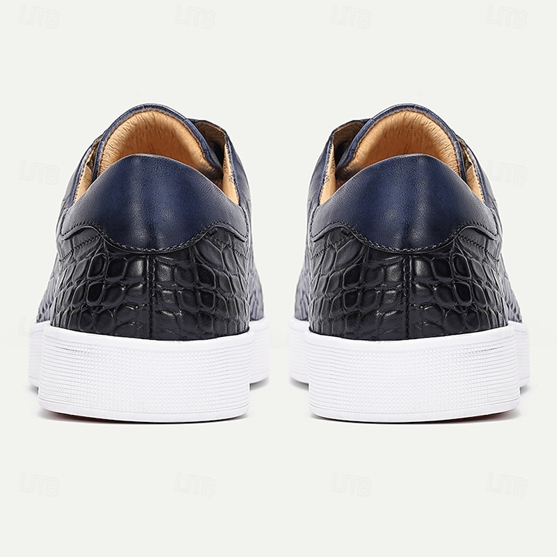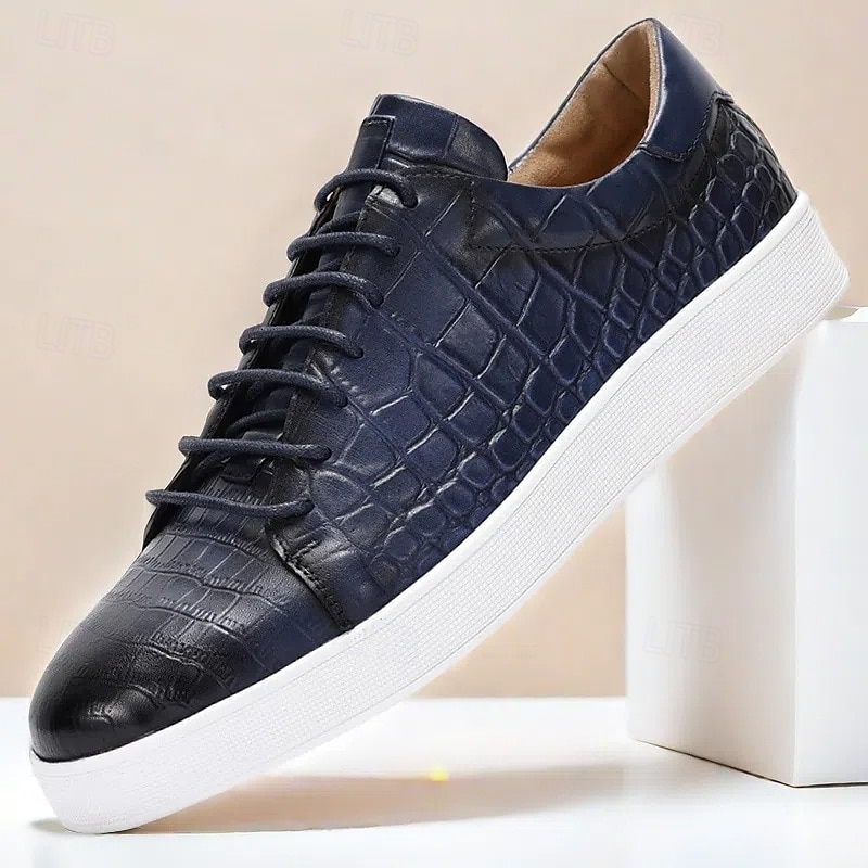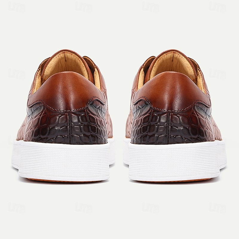 More information about Men's Brown Genuine Leather Sneakers – Stylish Crocodile Embossed Lace-Up Casual Shoes for Daily Wear