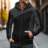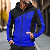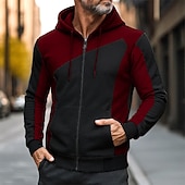 More information about Men's Hoodie Full Zip Hoodie Fleece Hoodie Black White Red Burgundy Blue Hooded Plain Patchwork Color Block Sports & Outdoor Casual Daily Streetwear Cool Sportswear Fall & Winter Clothing Apparel