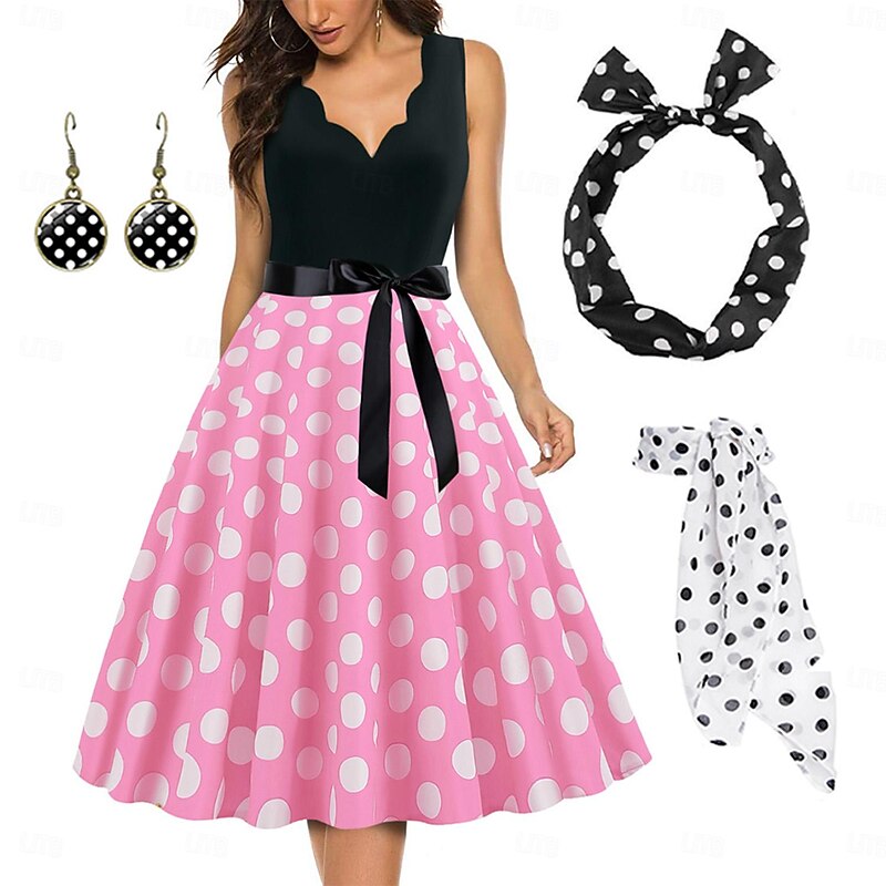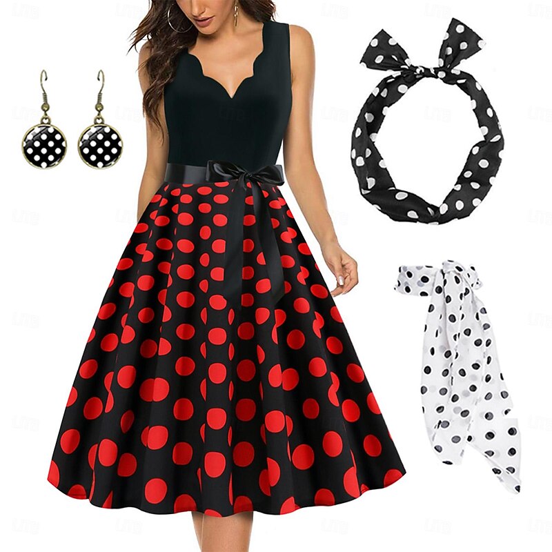 Polka Dots Retro Vintage 1950s Grease Outfits A-Line Dress Swing Dress Flare Dress Polka Dot Fancy Dress Women's Party / Evening Adults' Dress Earrings Headband 25