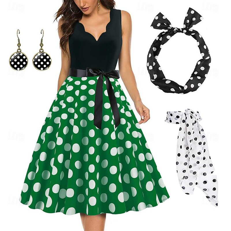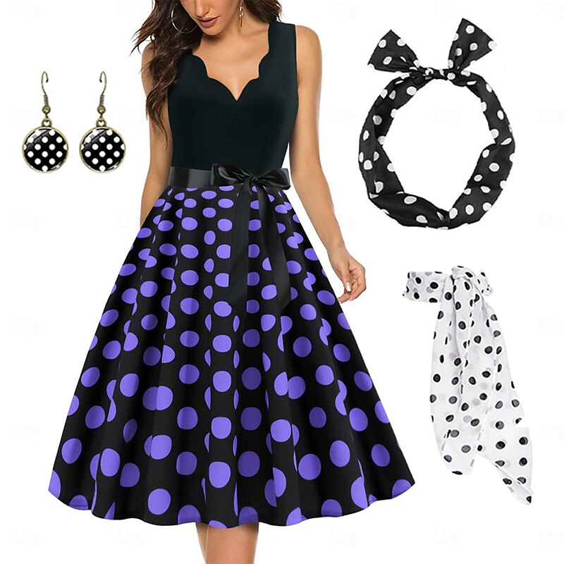 Polka Dots Retro Vintage 1950s Grease Outfits A-Line Dress Swing Dress Flare Dress Polka Dot Fancy Dress Women's Party / Evening Adults' Dress Earrings Headband 24