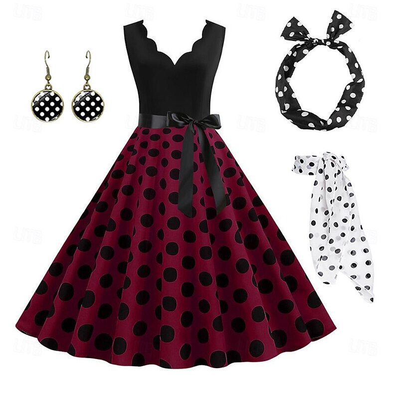 More information about Polka Dots Retro Vintage 1950s Grease Outfits A-Line Dress Swing Dress Flare Dress Polka Dot Fancy Dress Women's Party / Evening Adults' Dress Earrings Headband