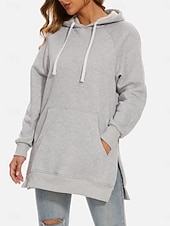 More information about Women's Hoodie Sweatshirt Casual Plain Street Dailywear Hoodie Pocket Long Sleeve Black Beige Gray Fall Winter