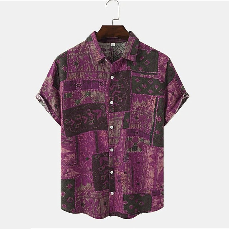 Men's Vintage Shirt Boho Shirt Button Up Shirt Short Sleeve Fashion Designer Casual Casual Daily Spring & Summer Turndown Button-Down Blue Purple Green Coffee 9