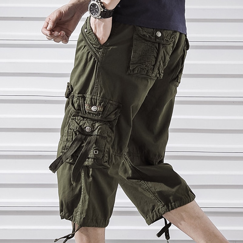 More information about Men's Capri Cargo Shorts Cargo Shorts Shorts Capri Pants Hiking Shorts Leg Drawstring 6 Pocket Plain Comfort Outdoor Daily Going out Fashion Streetwear Black Army Green