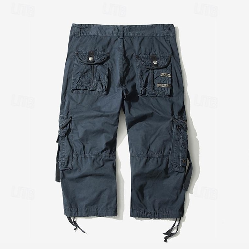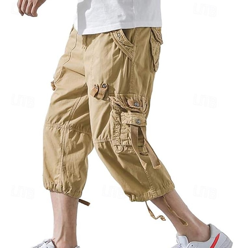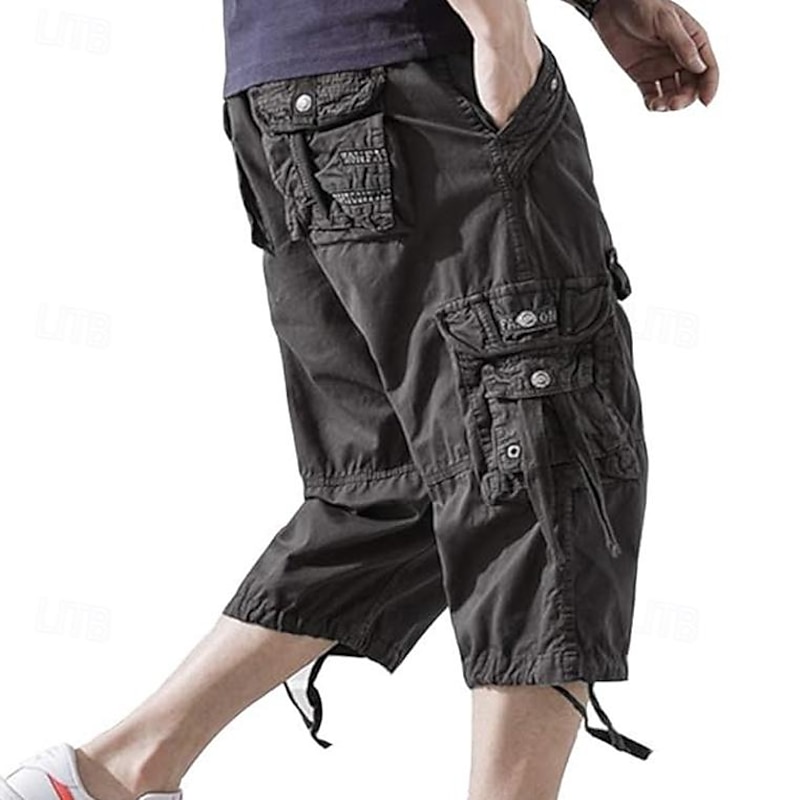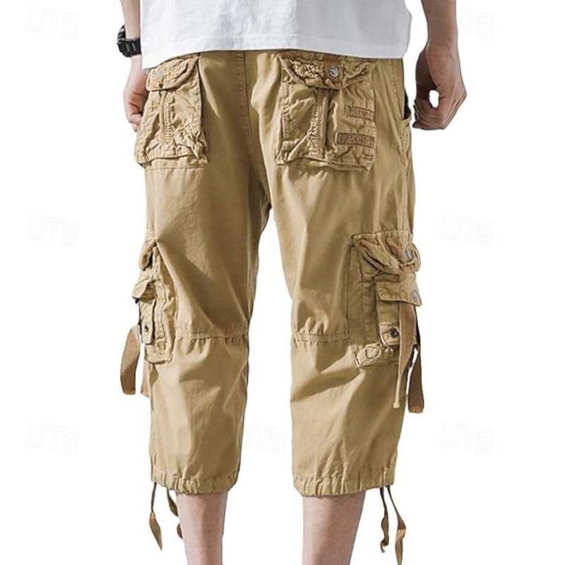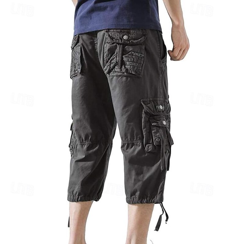 Men's Capri Cargo Shorts Cargo Shorts Shorts Capri Pants Hiking Shorts Leg Drawstring 6 Pocket Plain Comfort Outdoor Daily Going out Fashion Streetwear Black Army Green 23