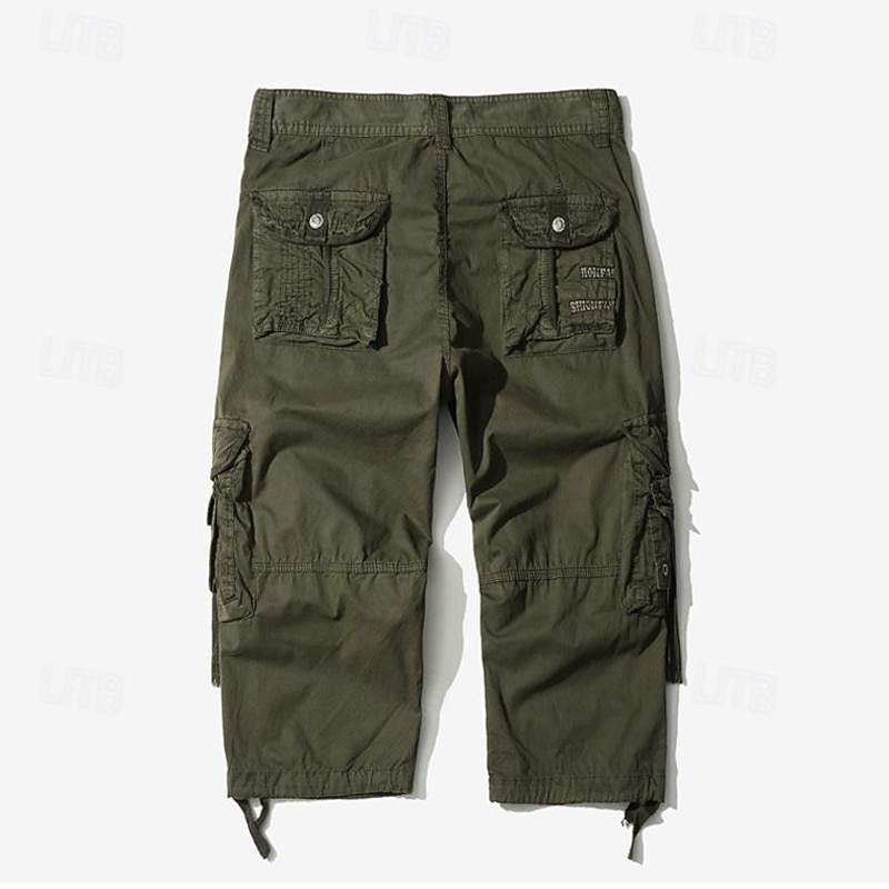 Men's Capri Cargo Shorts Cargo Shorts Shorts Capri Pants Hiking Shorts Leg Drawstring 6 Pocket Plain Comfort Outdoor Daily Going out Fashion Streetwear Black Army Green 13