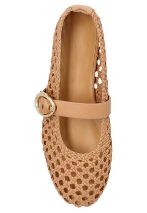 More information about OMLISHZTY Women's Woven Ballet Flats with Gold Buckle Strap - Round Toe Versatile Slip-Ons for Dressy & Casual Occasions