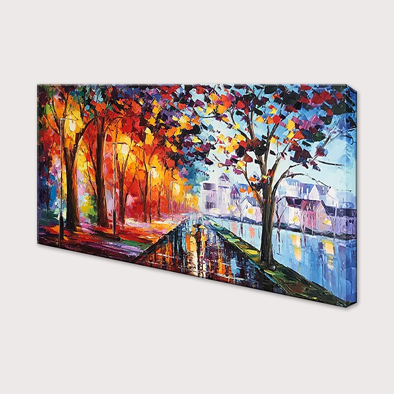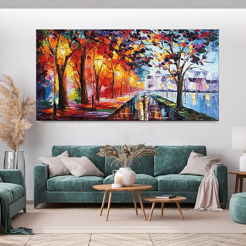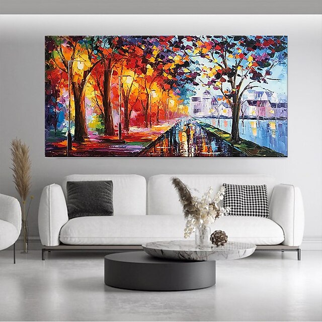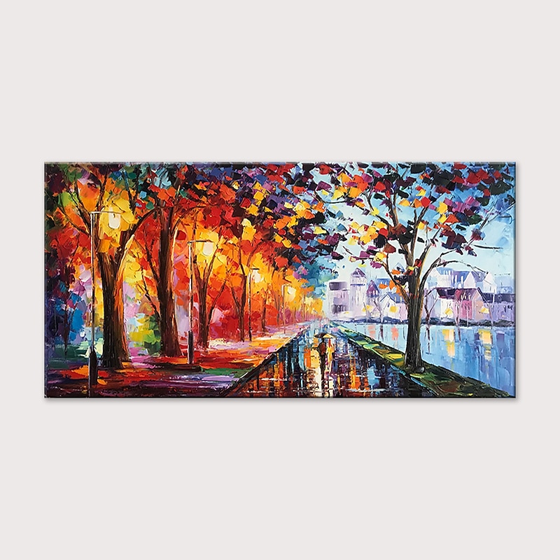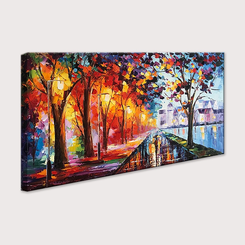 Handmade Oil Painting Canvas Wall Art Decoration Street Landscape Night View for Home Decor Rolled Frameless Unstretched Painting