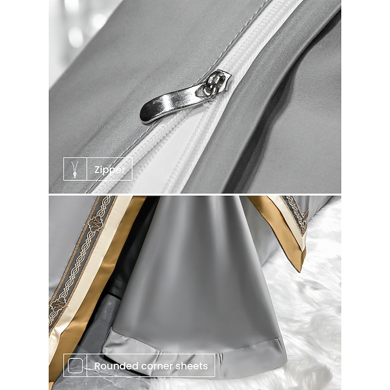 4PCS Duvet Cover Bedding Set 100% Organic Cotton Soft and Breathable Fabric Includes Duvet Cover and Pillowcases for a Comfortable Sleep 30