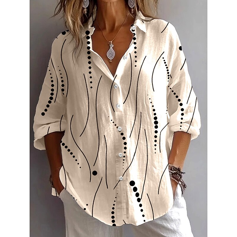 Women's Shirt Button Down Tunic Shirt Collar Long Sleeve Graphic Polka Dot Vintage Tropical Stylish Regular Tops Daily Holiday Going out s White Pink Blue Khaki Spring 2