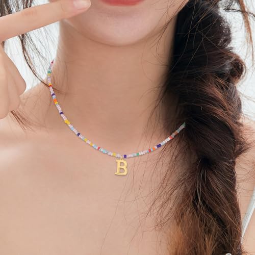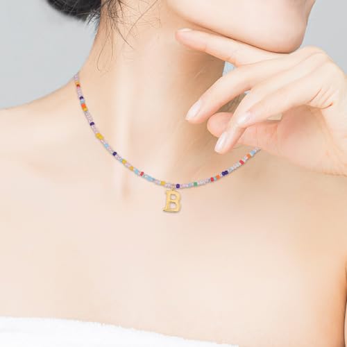 for Women Girls Letter PendantSummer Necklaces, Bohemian Beaded Necklace Colorful Beaded Initial Necklace Handmade Jewelry Gifts for Teens(B)