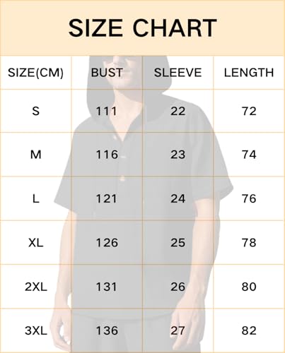 HOT ! Men's Casual Linen Blend Shirt Short Sleeve Hooded Pullover 1/4 Button Henley Shirt for Vacation and Daily Wear