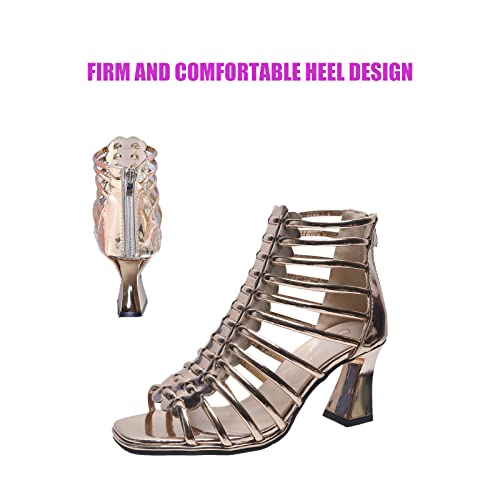 Women's Fashion Open Toe Gladiator Chunky Heel Sandals Hollow Strap Back Zipper Roman Sandals Business Masquerade Birthday Party High Heels 6