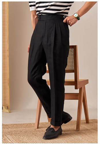 • Retro Style with Modern Comfort:These men's linen trousers blend vintage Italian design with contemporary comfort. Featuring a classic straight leg cut and double pleats, they offer a refined look perfect for both casual and business settings, making them a versatile addition to your wardrobe.