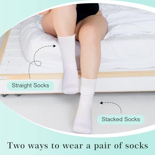 • 【Widely Applicable】These high-quality slouch socks for woman are suitable for a variety of occasions throughout the year. Women slouch socks suitable for office, school, hiking, outdoor activities, sports and fitness, family daily life, work environment, etc.; the elastic cuff design of the white socks crew can fit the ankles tightly, effectively preventing the socks from sliding down, while providing additional protection for your ankles.