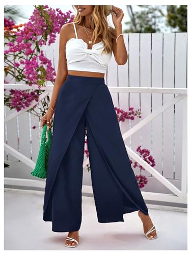 HOT ! MakeMeChic Women's Wide Leg Pants Elastic High Waisted Wrap Front Long Palazzo Pants