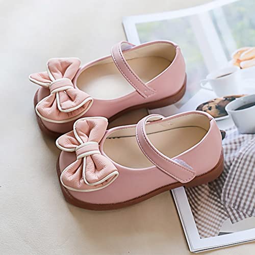 Spring and Summer Girls Casual Shoes Bow Hook Loop Solid Color Comfortable Single Shoes Toddler Girls Running Shoes Pink 4