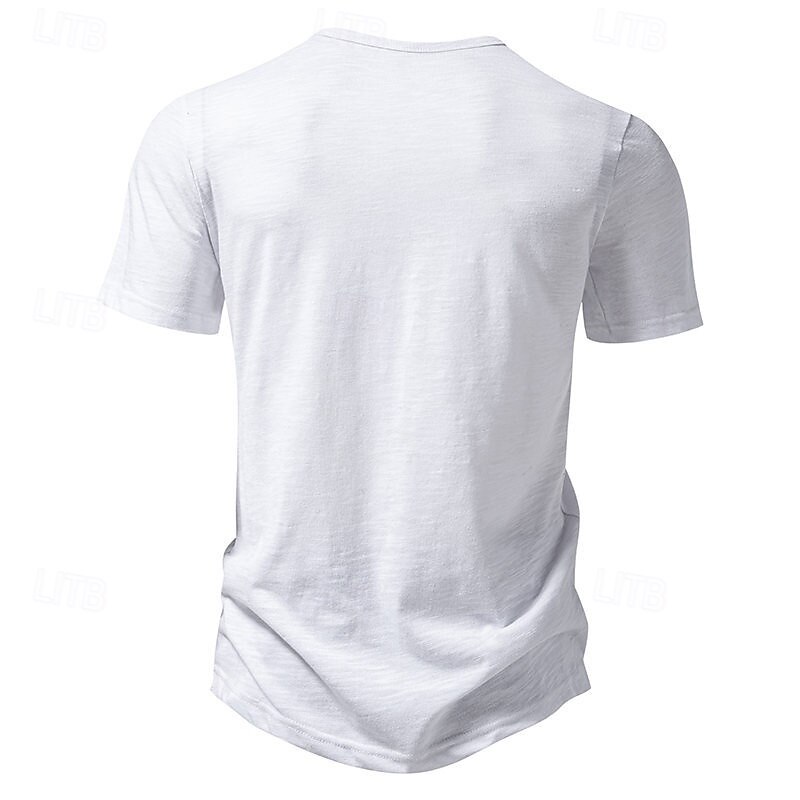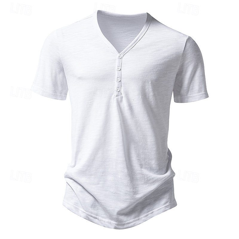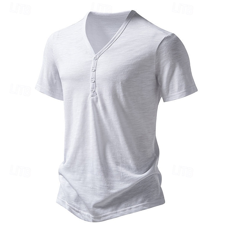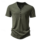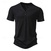 More information about Men's T Shirt Tee Top Short Sleeves Plain Designer Basic Buttons V Neck Vacation Street Going out Summer Black White Burgundy Henley T-Shirt